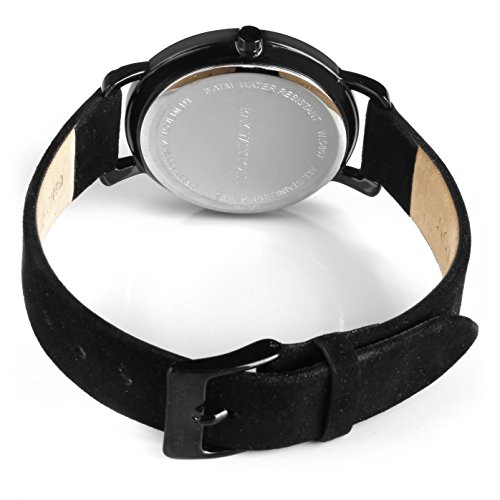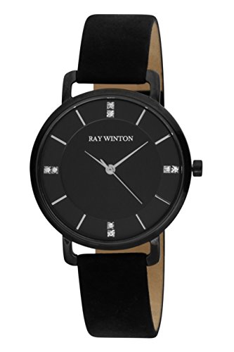 Ray Winton Women's WI0807 Diamond Slim Analog Black Dial Black Suede Leather Strap Watch