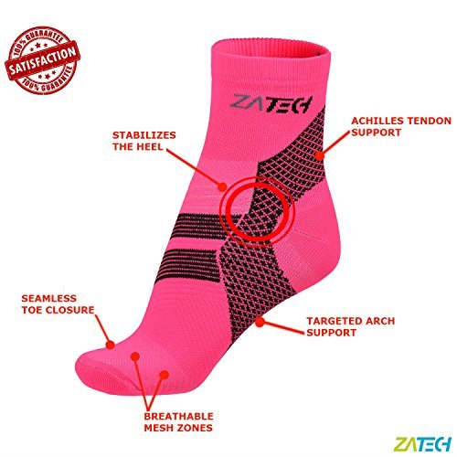 ZaTech Plantar Fasciitis Sock, Compression Socks. Heel, Ankle & Arch Support. (Pink/Black, Medium)