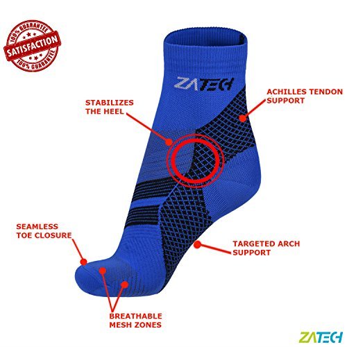 ZaTech Plantar Fasciitis Sock, Compression Socks. Heel, Ankle & Arch Support. (Blue/Black, Medium)