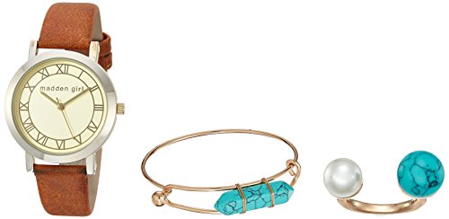 Steve Madden Women's Quartz Gold-Tone Casual Watch, Color:Brown (Model: SMGS004G-BR)