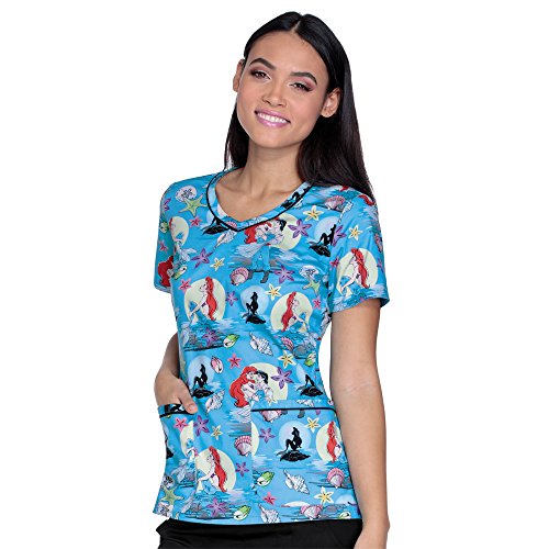 Tooniforms By Cherokee Women's V-Neck Little Mermaid Print Scrub Top