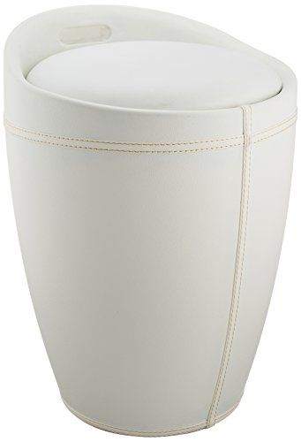 Wenko 21773100 Candy White Leather Look Bathroom Stool, 14.2" x 19.9" x 14.2"
