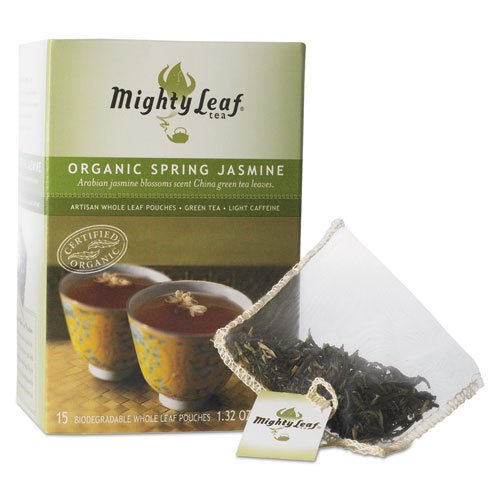 -. Brand : Mighty Leaf Tea -. EAN : 0640206714747 -. Feature : Sold as 15/BX. Tea pouches are stitched with unbleached 100% cotton, using no glue or staples on the seals. / Each pouch yields up to 14 oz (two servings). / Tea pouches are premeasured for consumption, no measuring or mess, perfect amount to create the perfect loose leaf cup of your favorite tea. -. Label : MIGHTY LEAF TEA CO -. Manufacturer : MIGHTY LEAF TEA CO -. Model : 30016 - BX -. MPN : MYT30016 30016 -. NumberOfItems : 1 -. PackageQuantity : 1 -. PartNumber : MYT30016 30016 -. ProductGroup : Kitchen -. ProductTypeName : KITCHEN -. Publisher : MIGHTY LEAF TEA CO -. Size : 15 ct -. Studio : MIGHTY LEAF TEA CO -. Title : Mighty Leaf Tea: Organic Spring Jasmine, 15 ct -. UPC : 640206714747