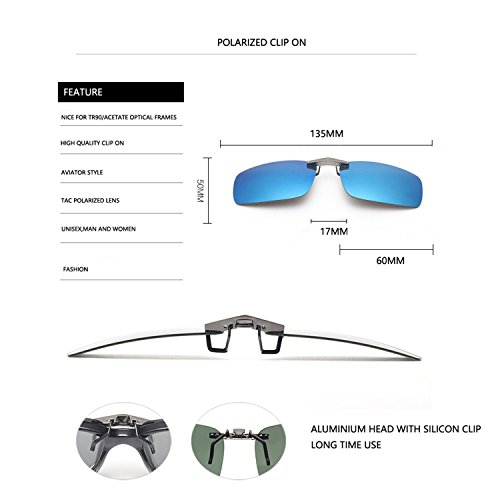 Tacloft Unisex Rectangle 57mm Polarized Clip on Sunglasses CLIPON2015-protect your eyes with this premium grade, classy rimmless sunglasses!