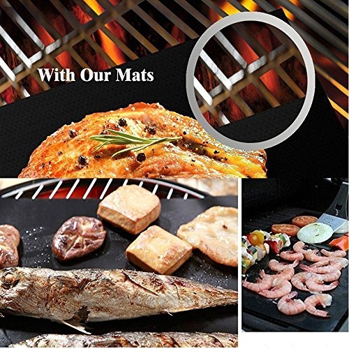 - 100% NON-STICK - 100% Non-Stick means you can grill without grease and mats are reusable for years! Non-stick BBQ grill mat prevent even the smallest morsels from falling through the grates. Keep your grill looking brand-new and no more clean-up of your dirty grill!
