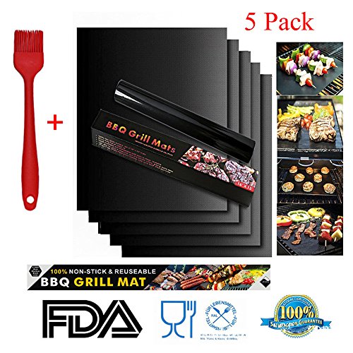 BBQ Grill Mat Charcoal Charbroil BBQ Grill Mats Set of 5 Black, 100% Non-stick Reusable and Easy to Clean - FDA Approved, PFOA Free, Works on Gas, Charcoal, Electric Grill (Black (5 Pack))