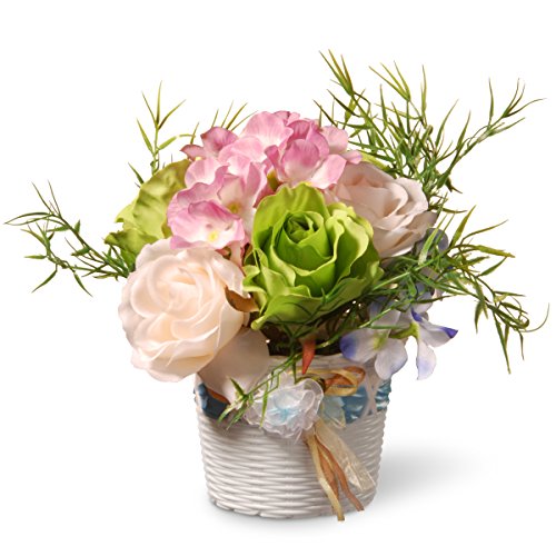 National Tree 7 Inch Assorted Rose and Orchid Flowers with White Basket Style Base (NF36-5277-1)