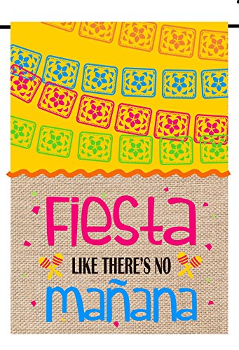 - Celebrate Cinco de Mayo in style! This colorful Cinco de Mayo garden flag features a colorful top with embroidery on burlap that features the phrase "Fiesta like there's no Manana"