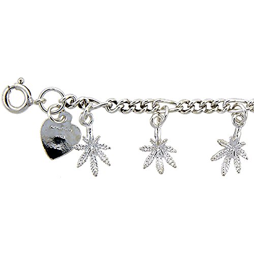 -. Title : Sterling Silver Figaro Link Pot Leaf Anklet, fits 9 - 10 inch ankles