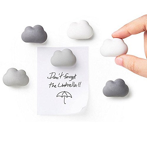 Novelty Fridge Magnets Cloud Magnets by Qualy Design Studio. Set of 6 Message Magnets. Cloud Magnets Gradual Colors from White to Dark Grey. Can be used in Office or at Home.
