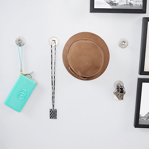 - √ DURABLE HEAVY DUTY MATERIALS & 6 SUPER ULTRA STRONG STICKINESS - While the hanger is constructed of polished FULL 304 stainless steel, NEVER rust, the hook backing is made of high quality 304 Stainless Steel, with strong 3M self adhesive which can provide extra strength and durability. Every hook (diameter:12mm, height:21mm) is 3Oz but it can hold up to general 5.5 pounds(2.5KG), Max 6.6 pounds (3kg).