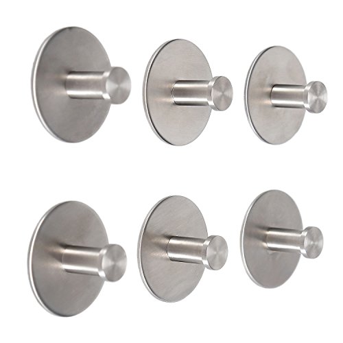 Angelbubbles Adhesive Hooks 6pcs/Pack 3M Sticker + FULL 304 Stainless Steel Hanger & Base (304 Stainless Steel)