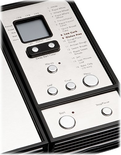 Smooth brushed stainless steel housing. Easy-to-read LCD control panel. Makes 1, 1.5 and 2 pound loaves. Crust control option to select light, medium or dark crust. Removable non-stick bowl. Removable lid with glass window.