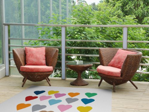 Kess InHouse Project M "Colorful Hearts" Indoor/Outdoor Floor Mat, 4-Feet by 5-Feet