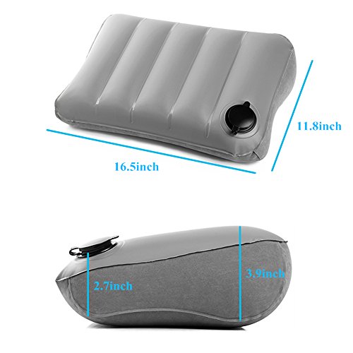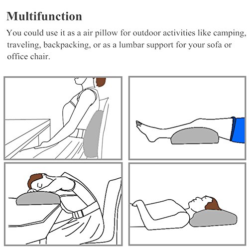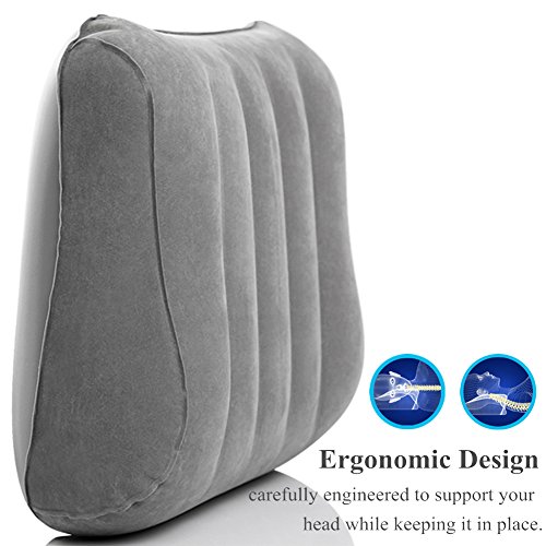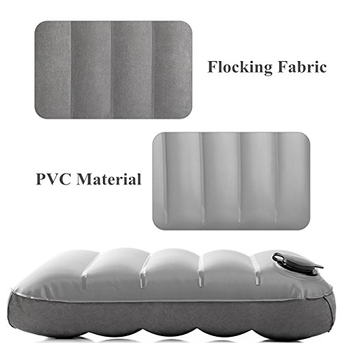 ☆ Superlight And Comfortable - Flocking fabric inflatable travel pillows. Soft and healthful super-thick flocking fabric and PVC material. Curved vertical lining inside generates ergonomic profile. Not only travel pillow, but also convenient airplanes, cars, buses, trains, office napping, camping - with it, comfortable to take a nap at noon, also can take it as a lumbar back support cushion.