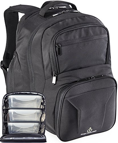 - VERSATILE AND COMPACT BACKPACK – Prep Naturals Lunch Bag Set is easy to bring with you anywhere. It includes meal prep backpack, insulated food lunchbox, 3 meal prep containers, supplement tray and ice pack. With 4 exterior pockets, 2 compartments, one mesh pocket and one laptop separator, it helps you keep things organized and within reach.