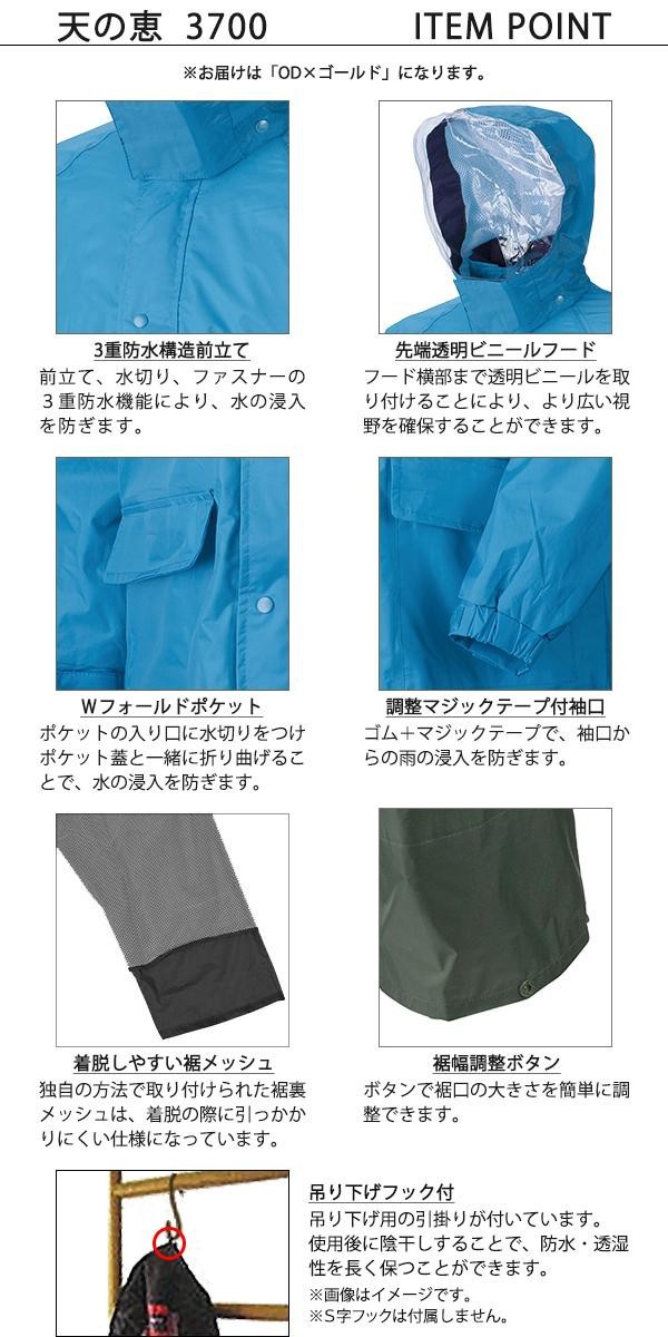 fk094igrjs基本を抑えた充実機能のレインウェアです サイズ 個装サイズ:32.0×23.5×5.0cm 重量 個装重量:1050g 素材・材質 表地:ナイロン100% 裏:PVC高弾性樹脂 裏地:ポリエステル100%(メッシュ) 仕様 上下セット 男女兼用 ポケット付(上着両脇2箇所) 吊り下げフック付(上着のみ) 収納袋付 生産国 中国 充実機能のスタンダードレインウェア 基本を抑えた充実機能のレインウェアです