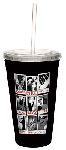 Tree-Free Greetings cc34246 Glorify with Music: Psalm 34:3 Artful Traveler Double-Walled Cool Cup with Reusable Straw, 16-Ounce