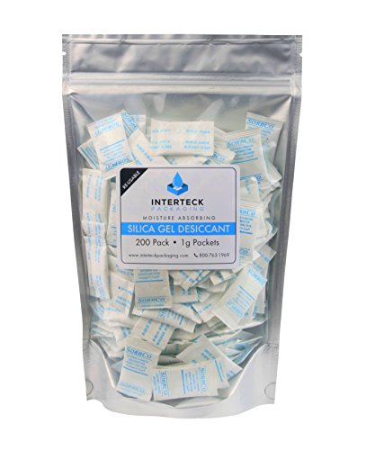 200 Pack of Industry Standard 1 Gram Silica Gel Tyvek Desiccant Packets and Dehumidifiers, Made in USA