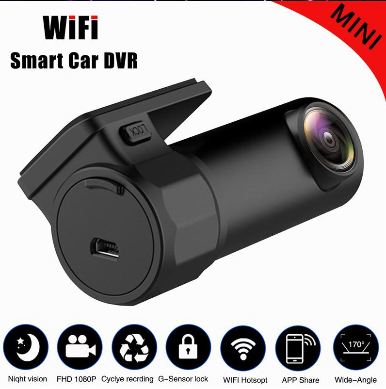Mini Size WIFI Full HD 1080P Car DVR Camera 170 Degree Wide Angle G-Sensor Car Dash Camera Video Recorder Black