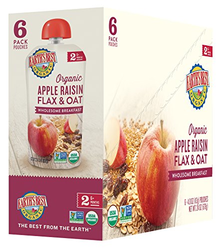 Earth's Best Organic Stage 2, Apple & Raisin Breakfast, 4 Ounce Pouch (Pack of 12) (Packaging May Vary)