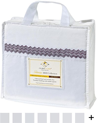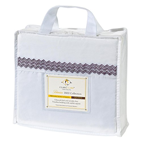 Clara Clark Designer 1800 Collection Wave Embroidered White Sheet Set, Queen Size, Purple
