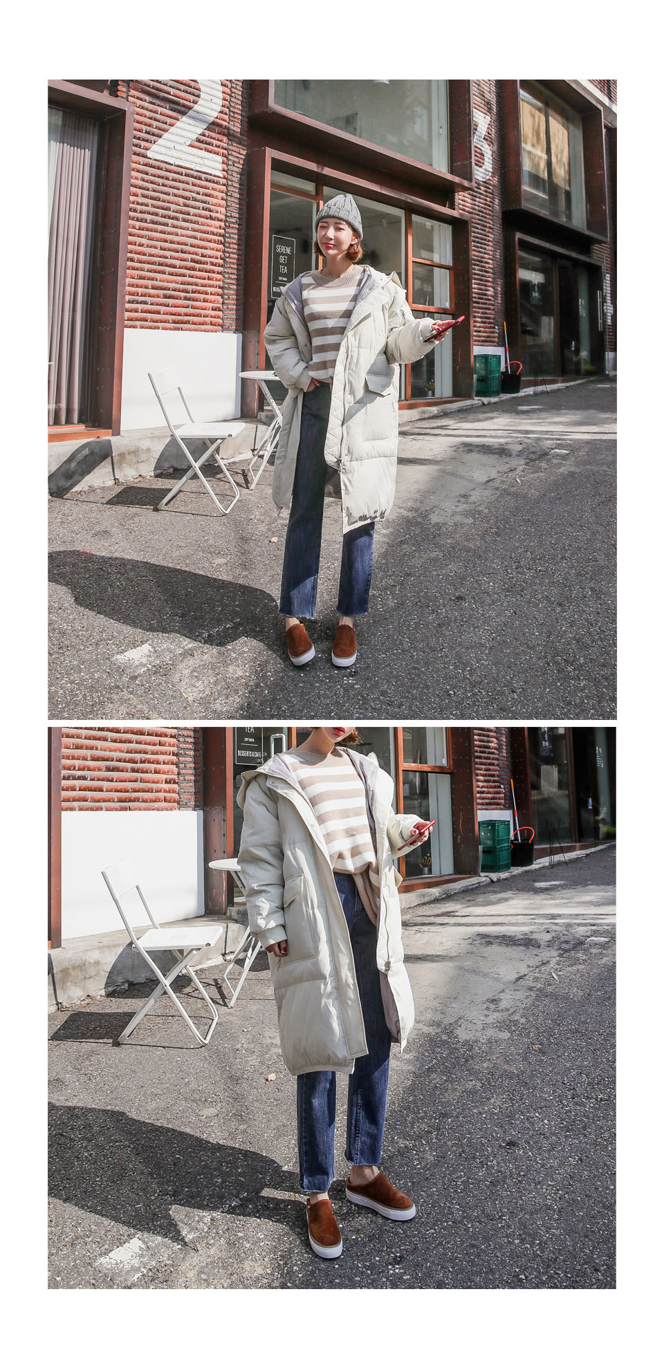 일자로 떨어지는 핏이 슬림해보이면서도 편안하게 즐길 수 있어 좋아요~~