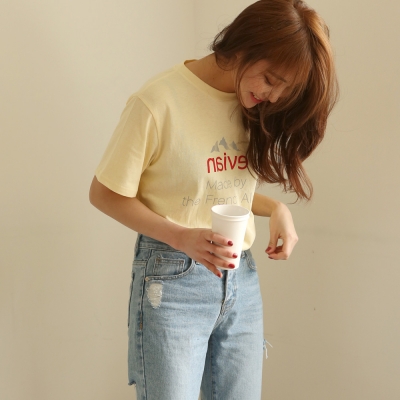 트렌디한 파스텔 톤의 감각적인 레터링 포인트가 들어간 라운드 티입니다. 적당한 품에 라운드 넥 디자인으로 데일리하게 스타일링하기 좋은 아이템인데요. 화사한 파스텔톤이라 트렌디하면서 활용도가 높구요. 프론트에 감각적인 레터링과 프린팅이 매력적입니다. 전체적으로 살짝 비침이 있어 비침에 민감하신 분들은 이너나시 착용하는 걸 권장 드려요.