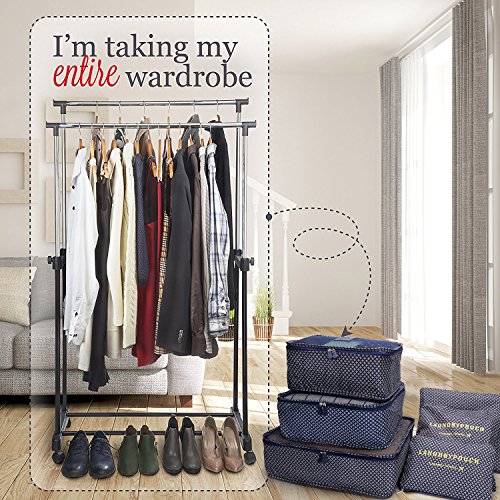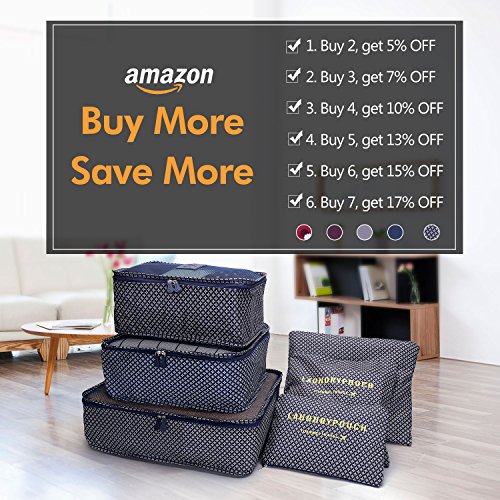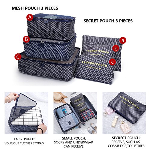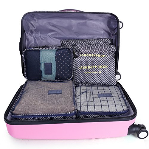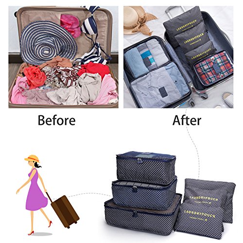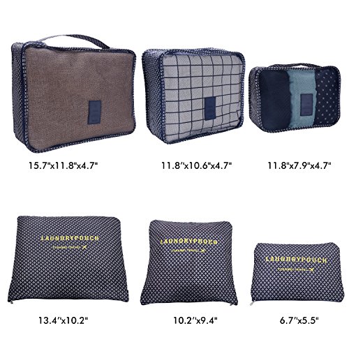 ✔EASY-TO-USE:VARIOUS SIZES of cubes help you to divide your things wisely. For instance, the laundry Bag Included to Help Separate your Dirty Clothes At The End of The Trip,and it is perfect as your private bag, you can put your underwear, socks in it.If you're a girl, you can use it as a cosmetic bag too! Large interior volume holds all your travel clothing, shoes, makeup, shaving accessories,chargers,cords,headphones and ect.It's up to your wishes! The cubes does make organization much easier.