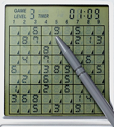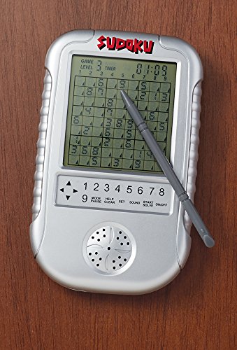 Studio : RI FENG TOYS Publisher : RI FENG TOYS Product Description Fans can't get enough of those intriguing sudoku puzzles. Here's the answer. Electronic, handheld game features over 2,000,000 puzzles for months or even years of play! Eight levels of increasing difficulty, time/date indicator and clock. Stylus included; 3½"l. Uses 2 AAA batteries, not included. 5"l. 0
