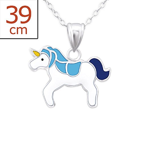 -. Title : Laimons Kinder-Anhänger Einhorn mit Kette 39cm hell blau aus Sterling Silber 925