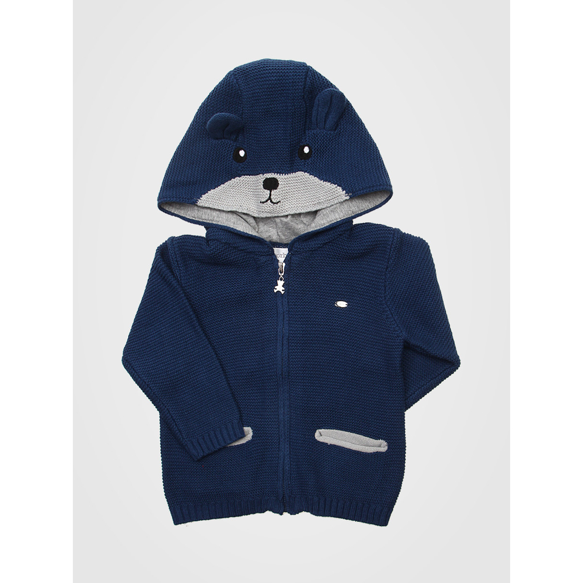 간절기에 코디하기 좋은 두께감의 니트후드점퍼입니다. 조직감이 있는 니트로 고급스럽고 후드에 귀여운 곰자수와 귀장식으로 포인트를 주었습니다.지퍼여밈으로 입고 벗기 편리합니다.