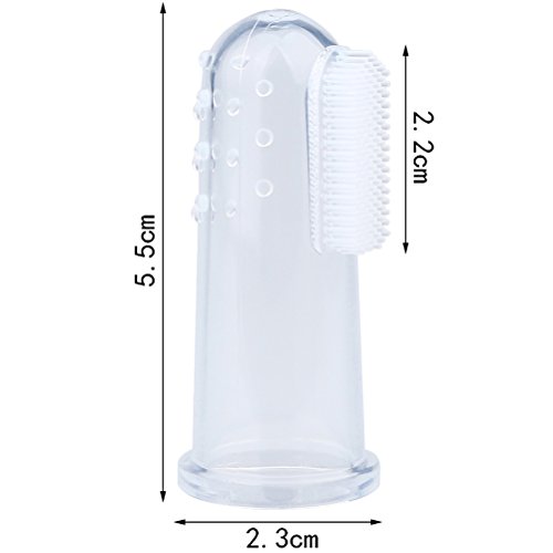 Specification:Size: 5.5x1.8cmColor: clearMaterial: siliconeFeature:1 Good for pet care: brushing your pet's teeth daily, may prevent gum disease and minimize the risk of tooth loss for your pet2 Unique design: soft brush material and allows you to reach hard to clean areas to remove tartar and plaque without the risk of hard bristles hurting your pet3 Soft silicone material: the toothbrush is made from soft silicone, safe and non-toxicPackage include:10*Finger ToothbrushFeature