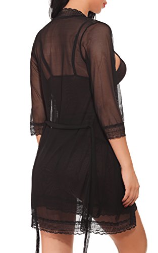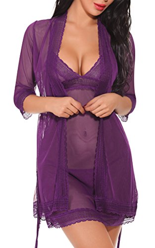 -. Feature : BMAKA Women Lingerie Lace Robe Bridal Wedding Nightwear Set of 3 / Special Design: Lace and mesh patchwork,3 pieces lingerie suit,the set includes the chemise, robe and thong.the women lingerie is slimming to show curve. / Style: Sexy women lingerie sets features floral lace cups,full lace robe,corset and slim chemise,full lace decorated on the chest,waist and hem,adorable and feminine nightwear for you / Features: Hand wash in low temperature's water is better,hang to dry,iron with press cloth,best choice as bridal lingerie,soft nightwear and sexy bath robe. / Model is 5'6 and 120 lbs,34C wear S,please choose the size from BMAKA's size chart in the product description,Please choose larger size if you want to feel loose and comfortable.