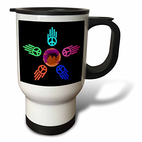 3dRose Peace Sign Hands Around The World on Black Travel Mug, 14-Ounce
