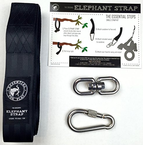 TREE SWING HANGING STRAP KIT with Heavy Duty Hardware Easy installation & removal on trees - posts etc 1 - 60" strap 1 - safety lock carabiner 1 - swivel 1 - carry bag - Holds 1000 lbs