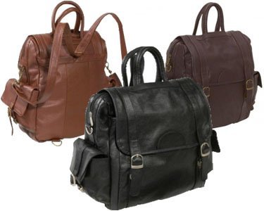 -. Feature : Top-grain cowhide leather / Fully lined / Two side pockets, snap closures / Large main compartment / It features a snap closure, zippered large main compartment, and a zippered outer panel compartment with accent buckles.