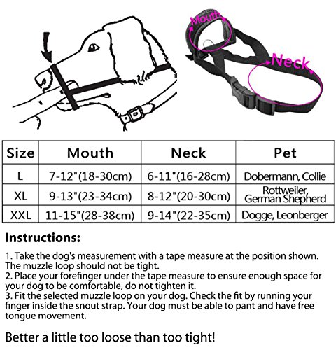 Size Map L - Snout Circumference: 7-12"; Neck Strap: 6-11" XL - Snout Circumference: 9-13"; Neck Strap: 8-12" XXL - Snout Circumference: 11-15"; Neck Strap: 9-14"