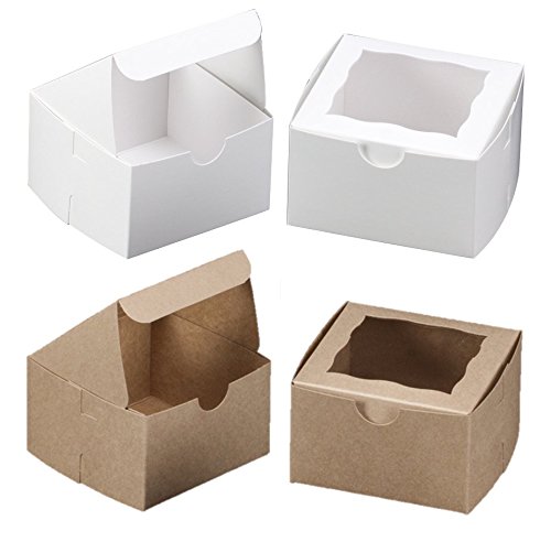 White Bakery Box With Window 4x4x2.5 inch - 25 Pack - Eco-Friendly Paperboard Take Out Gift Boxes for Pastries, Cookies, Cupcakes, and more - by California Containers