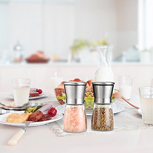 Magicook Salt and Pepper Grinder Set, Stainless Steel Grips Grinder, Black Pepper Mill Cooking Utensil Grinders, Coarse to Fine Adjustable Grinder