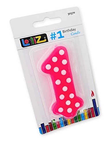 LolliZ Candle #1 First Birthday. Pack of 1. PINK w/ White Polka Dots. Unique Novelty Design