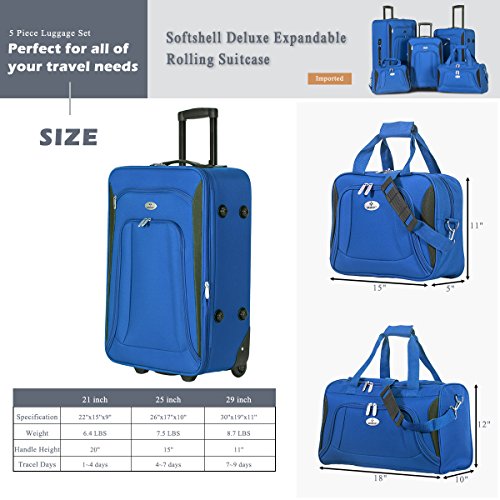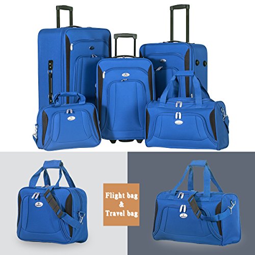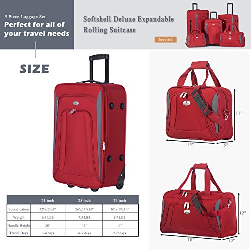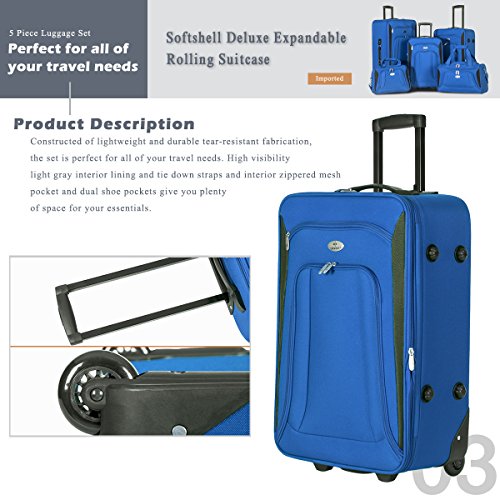 Product Description Constructed of lightweight and durable tear-resistant fabrication, the set is perfect for all of your travel needs. High visibility light gray interior lining and tie down straps and interior zippered mesh pocket and dual shoe pockets give you plenty of space for your essentials. Need a little more room? The expandable feature gives you 25% more packing capacity. Plus, multiple front zippered pockets are perfect for travel documents and magazines. It also features an internal retractable push-button handle system, and inline skate wheels for smooth rolling. Dual top and side carry handles and bottom grip makes lifting easy.