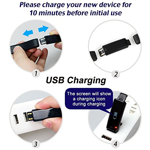 Q: About charging and battery life. A: Please charge it on USB plug, charge time: 1-2 hours. We recommend charging your device every few days to ensure you are always tracking.