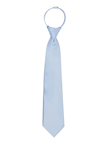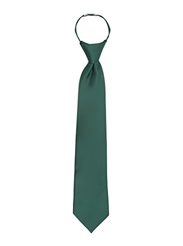 Binding : Apparel Product Description This is a solid color boy's sized pretied zipper tie with a medium satin microfiber finish. The tie measures 2.5" wide and 14" long. The tie is tied already and features an adjustable sliding zipper. To open, hold the knot firmly in one hand and pull the loop open. Slip it on, and hold the tail end as you slide the knot up into place. Takes seconds to put on and makes a perfect knot every time! Well made with a soft but durable lining to give it a nice body and weight. Boy's size ties really depend on the height of the child. Generally, this tie will fit ages 5-8. For the best fit, measure from the boy's neck to the belt line. This zipper tie is 14" long. Check out our other options for boy's size ties available in a self tie or other pretied zipper sizes. This item is part of the trademarked Jacob Alexander collection of men's and boy's neckwear and accessories.