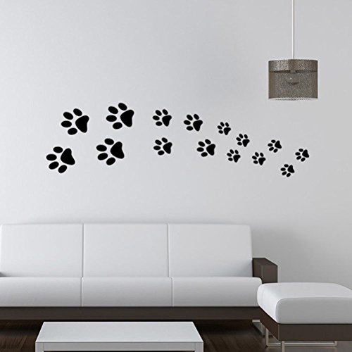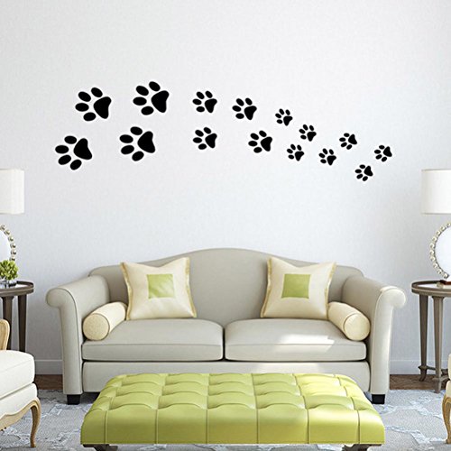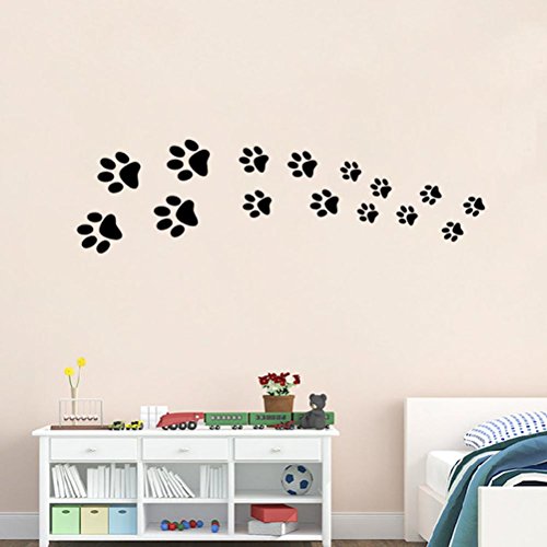 BIBITIME Black Dog Paw Prints Wall Decal Nursery Bedroom Kids Room Decor Vinyl Art Animal Footprint Stickers for Car DIY