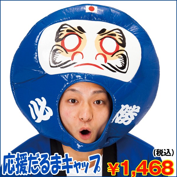 心から熱く応援するならコレしかない!必勝ダルマキャップ!頑張れ!ニッポン!野球やサッカー等スポーツ観戦や学園祭等の応援や元気のシンボルコスプレには、応援必勝青だるまで目立っちゃおう!! 軽くて、かぶりやすく、しかも目立つ!!どこから見ても、目立ちます!日本の国旗がプリントされているので、国際試合やオリンピックなどにもおススメです!