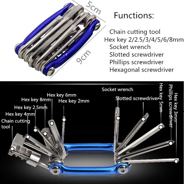 Specifications of HKS 11Function Anodised Bicycle Bike Multi Tool Allen Keys Screwdrivers Chain Tool Dark Blue
