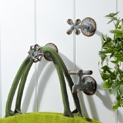Waterspout Traditional Vintage Garden Faucet Iron Wall Hooks - Set of 3 Single Hooks