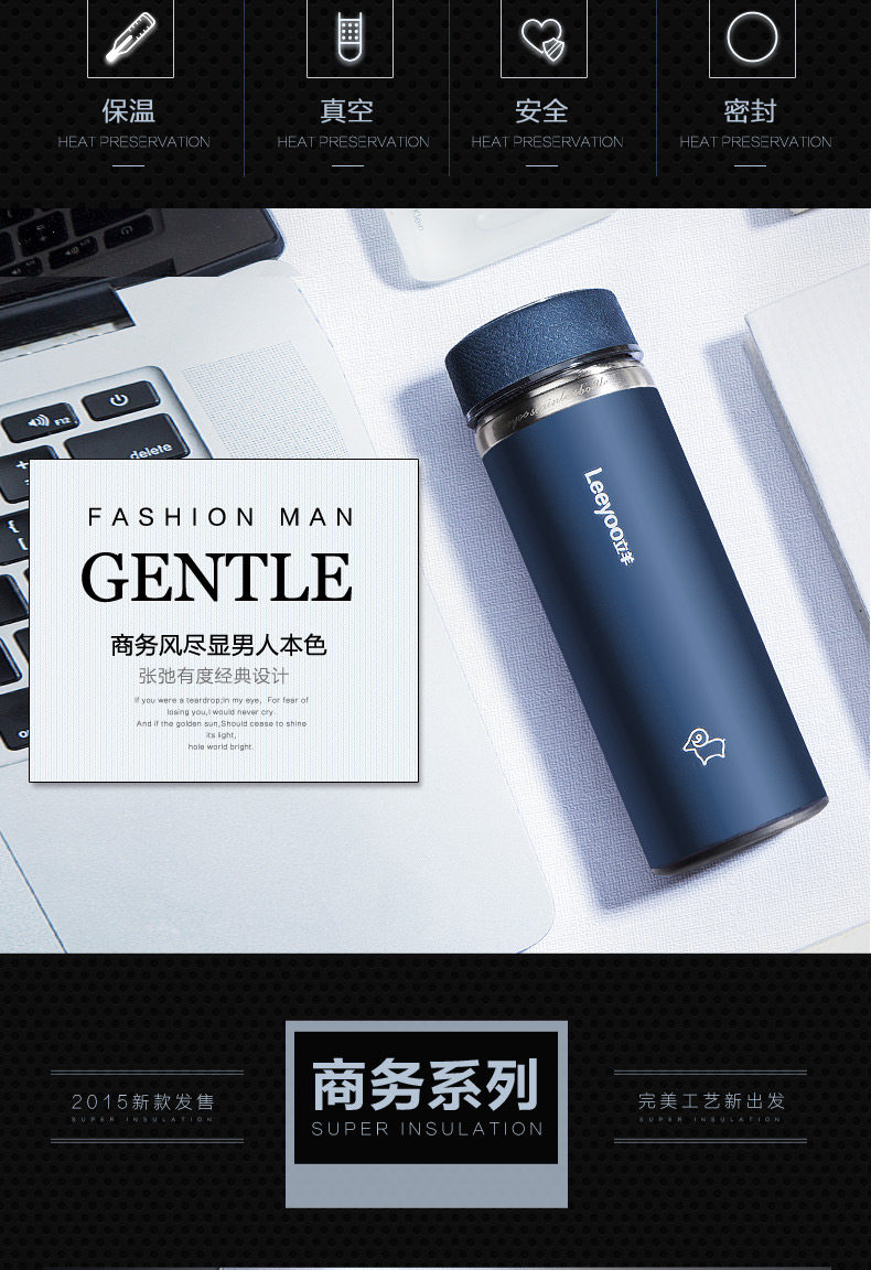 高档男士商务保温杯男 不锈钢直身杯 水杯双内胆三层保温杯子