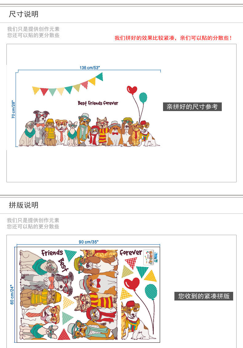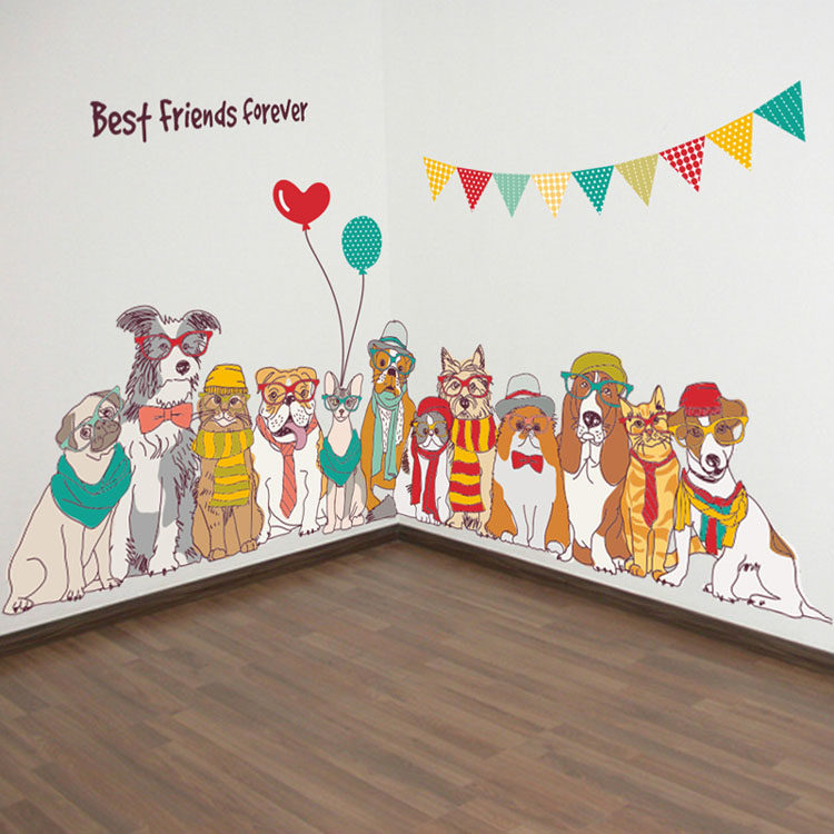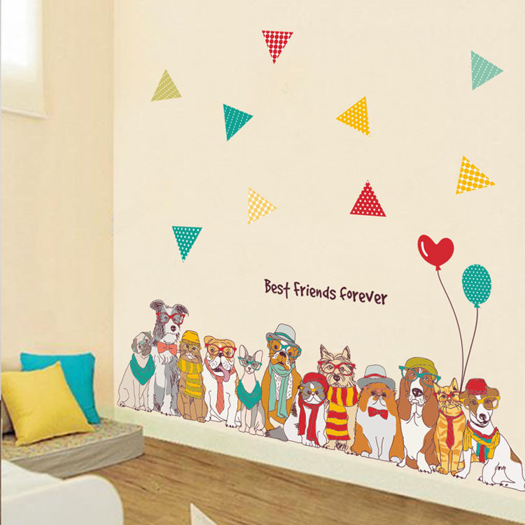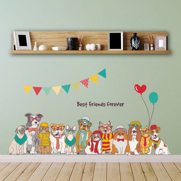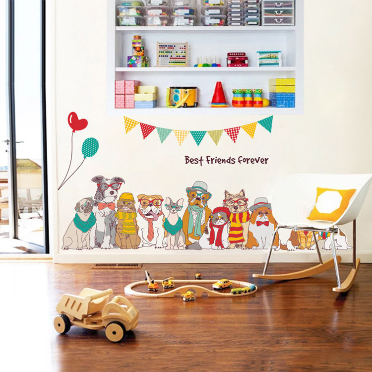 墙贴创意儿童房贴纸可爱卡通狗狗聚会幼儿园背景布置贴画墙面壁画